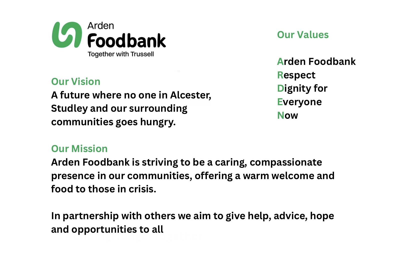 At Arden Foodbank we are all unpaid volunteers. We have no paid staff. To celebrate Volunteers Week at the beginning of June, Arden Foodbank said a huge thank you to all our amazing volunteers. To those who help each week at our food banks in Studley and Alcester; to those who transport the food and other items from our warehouse to the food banks; to those who manage our warehouse, buy the food and ensure it is all in date; to those who attend events to help out; and to those who work behind the scenes keeping records, managing our finances, organising volunteers, and managing our marketing and communications.